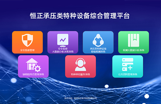 “恒正承壓類特種設備綜合管理(lǐ)平台”以承壓類特種設備檢驗業(yè)務應用(yòng)為(wèi)基礎,相(xiàng)關系統可(kě)應用∑(yòng)至計(jì)量、特種設備管理(lǐ)、質量檢驗、市(shì)場(chǎng)監督綜合執法等領域。
