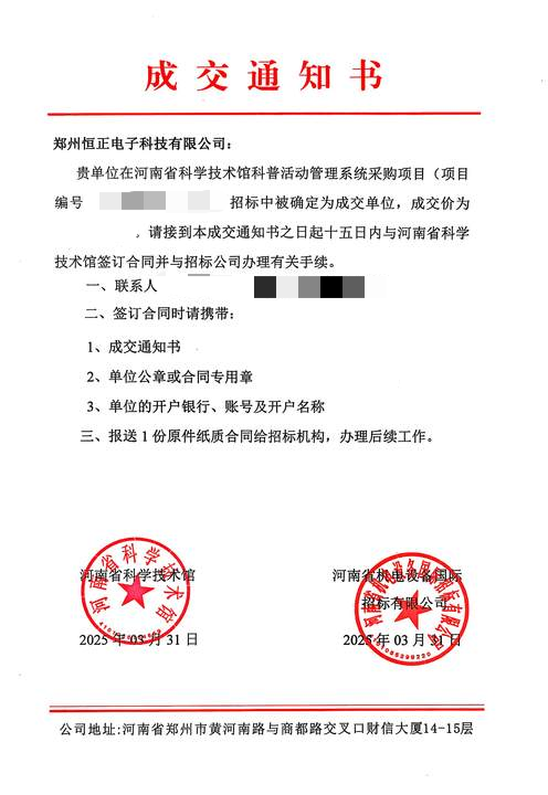 中标河(hé)南(nán)省科(kē)學技(jì)術(shù)館科(kē)普活動管理(lǐ)系統采購(gò€u)項目